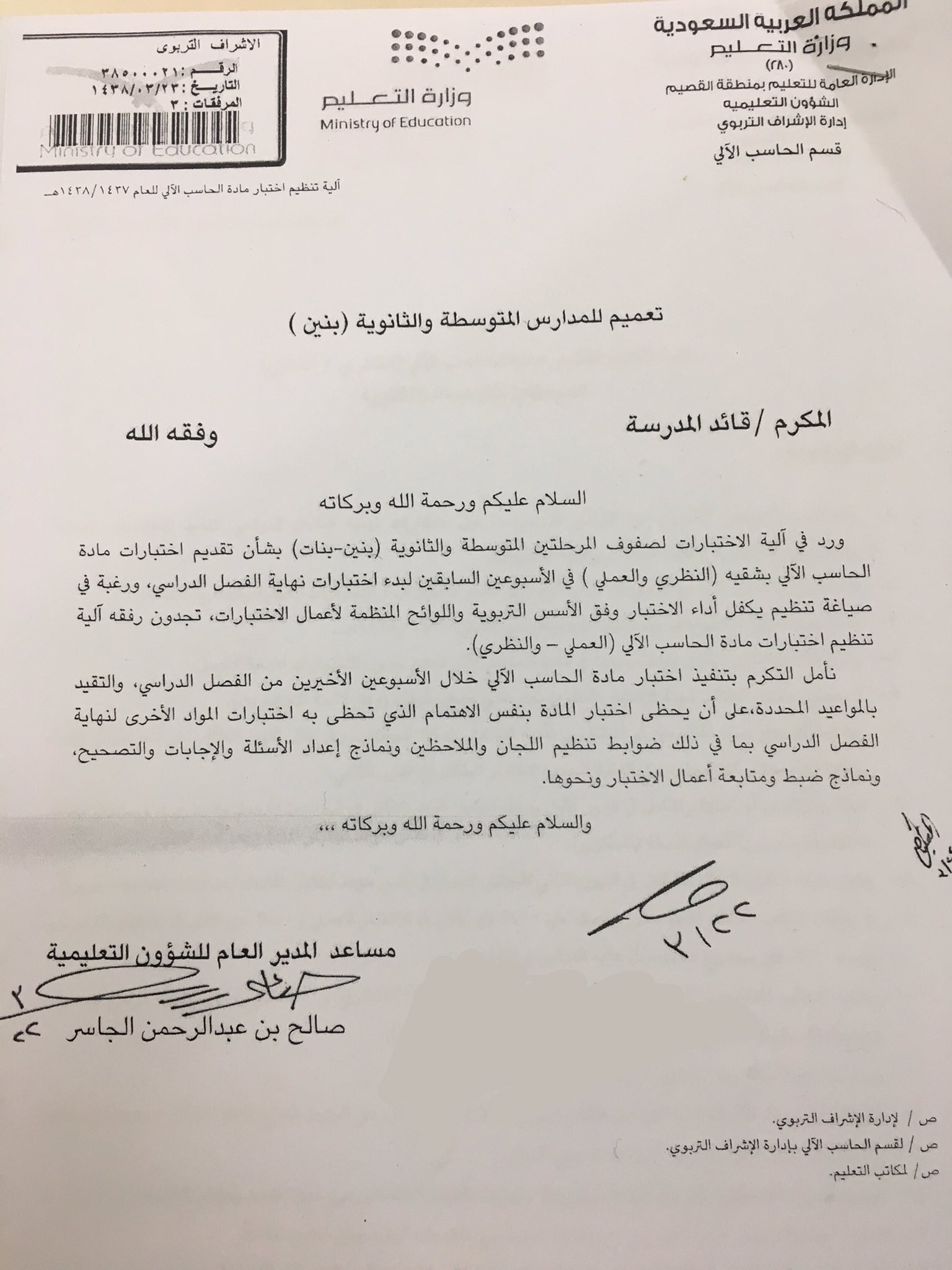 مساعد المعلم مدرستي Na Twitteru تعميم آلية وتقديم اختبار الحاسب الآلي النظري والعملي في الاسبوعين السابقين لبدء اختبارات نهاية الفصل الدراسي