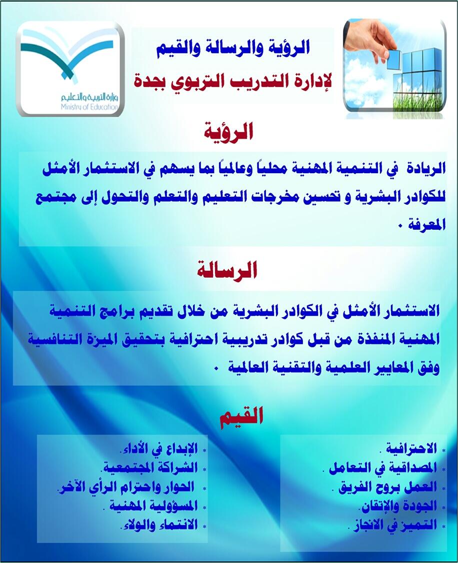 مركز تدريب جدة 1 Sur Twitter الرؤية والرسالة والقيم لإدارة التدريب التربوي بجدة Http T Co Ze2k2dly1c