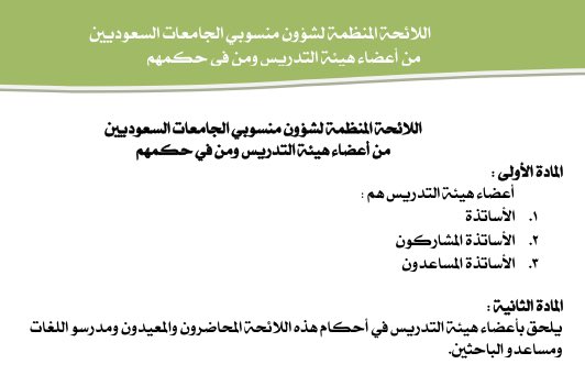 اللائحة المنظمة لشئون منسوبي الجامعات السعوديين من أعضاء هيئة التدريس ومن في حكمهم.