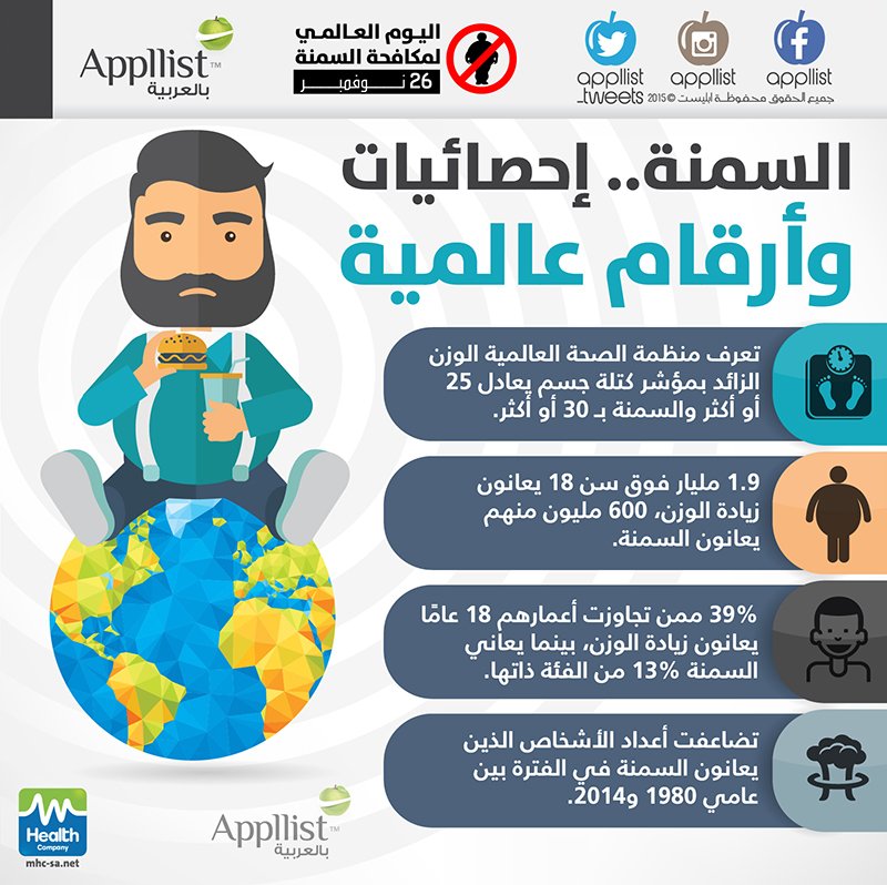 ابليست بالعربية En Twitter إحصائيات وأرقام مخيفة عن السمنة وزيادة الوزن اليوم العالمي لمكافحة السمنة 26 نوفمبر تطبيق ابليست طب صحة Https T Co Yk5yxhrtc5