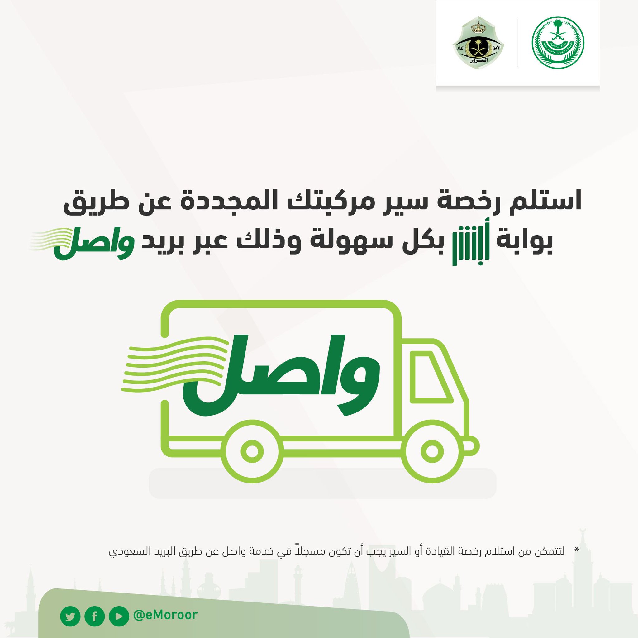 المرور السعودي Ar Twitter استلم رخصة سير مركبتك المجددة عبر خدمة واصل البريدية في أي مكان وعلى أي عنوان تحدده المرور السعودي