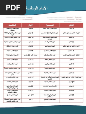 وثيقة الأعياد و الأيام الوطنية و العربية و العالمية في حلة جميلة
