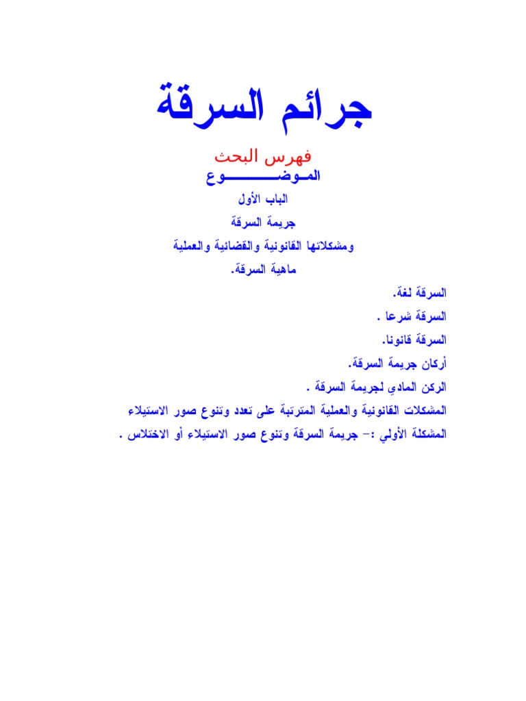بحث و دراسة متعمقة في جريمة السرقة حسب القانون استشارات قانونية مجانية
