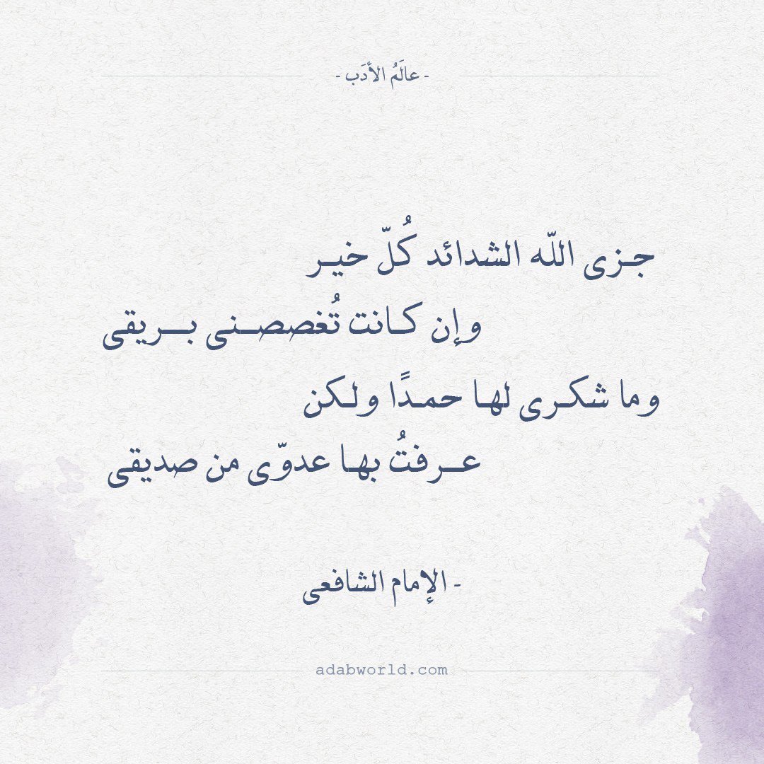 O Xrhsths عالم الأدب Sto Twitter جزى الله الشدائد ك ل خير وإن كانت ت غصصني بريقي وما شكري لها حمد ا ولكن عرفت بها عدو ي من صديقي الإمام الشافعي الشافعي الشقاء حكم شعر