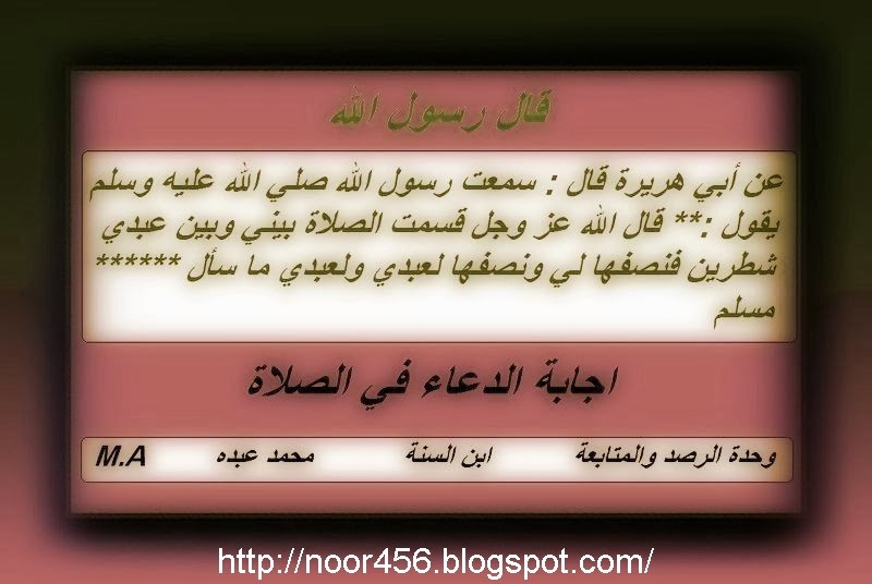 قال الله تعالي قسمت الصلاة بيني وبين عبدي نصفين ولعبدي ما سال مدونة نور الكتاب والسنة