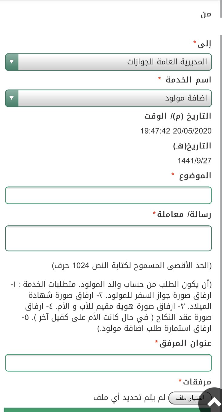 إتمام للخدمات Auf Twitter تنويه أضافت الجوازات خدمة إضافة مولود داخل المملكة لقائمة الرسائل والطلبات المتاحة عبر منصة أبشر واشترطت أن يكون الطلب من حساب والد المولود إتمام للخدمات Https T Co Sld2yowaoy