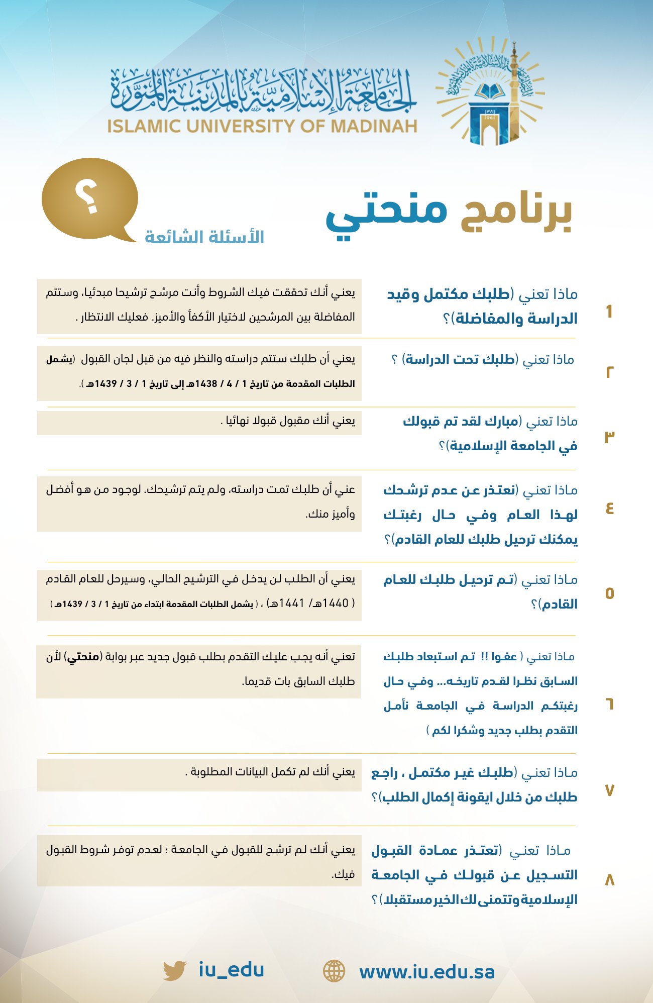عـمادة القبول والتسجيل On Twitter تعلن عمادة القبول والتسجيل عن طلاب المنح الخارجية المقبولين للفصل الثاني من العام الجامعي الحالي ١٤٣٩ ١٤٤٠ هـ Https T Co 88o4hz2ms9 الجامعة الإسلامية عمادة القبول والتسجيل Https T Co C0gqitv19l