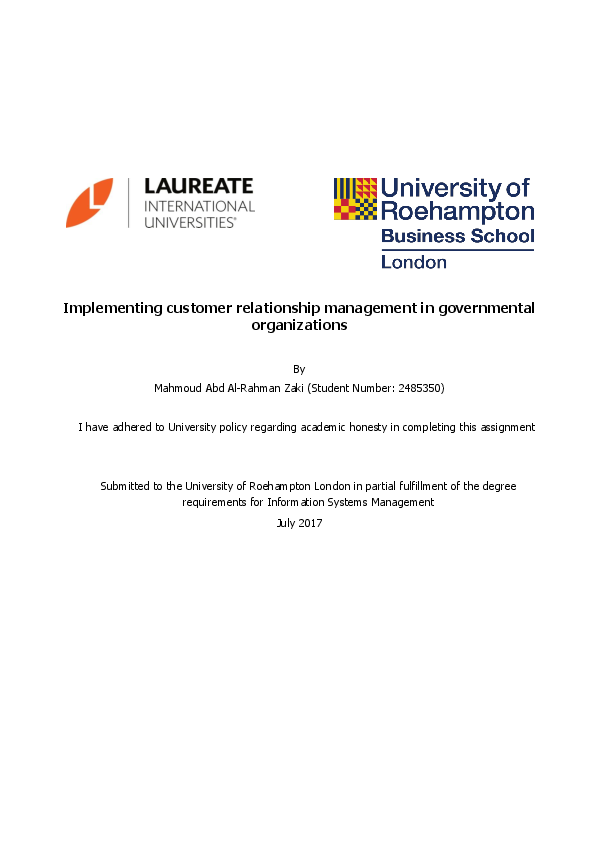 Pdf Master Research Project Implementing Customer Relationship Management In Governmental Organizations Mahmoud Abd Al Rahman Academia Edu