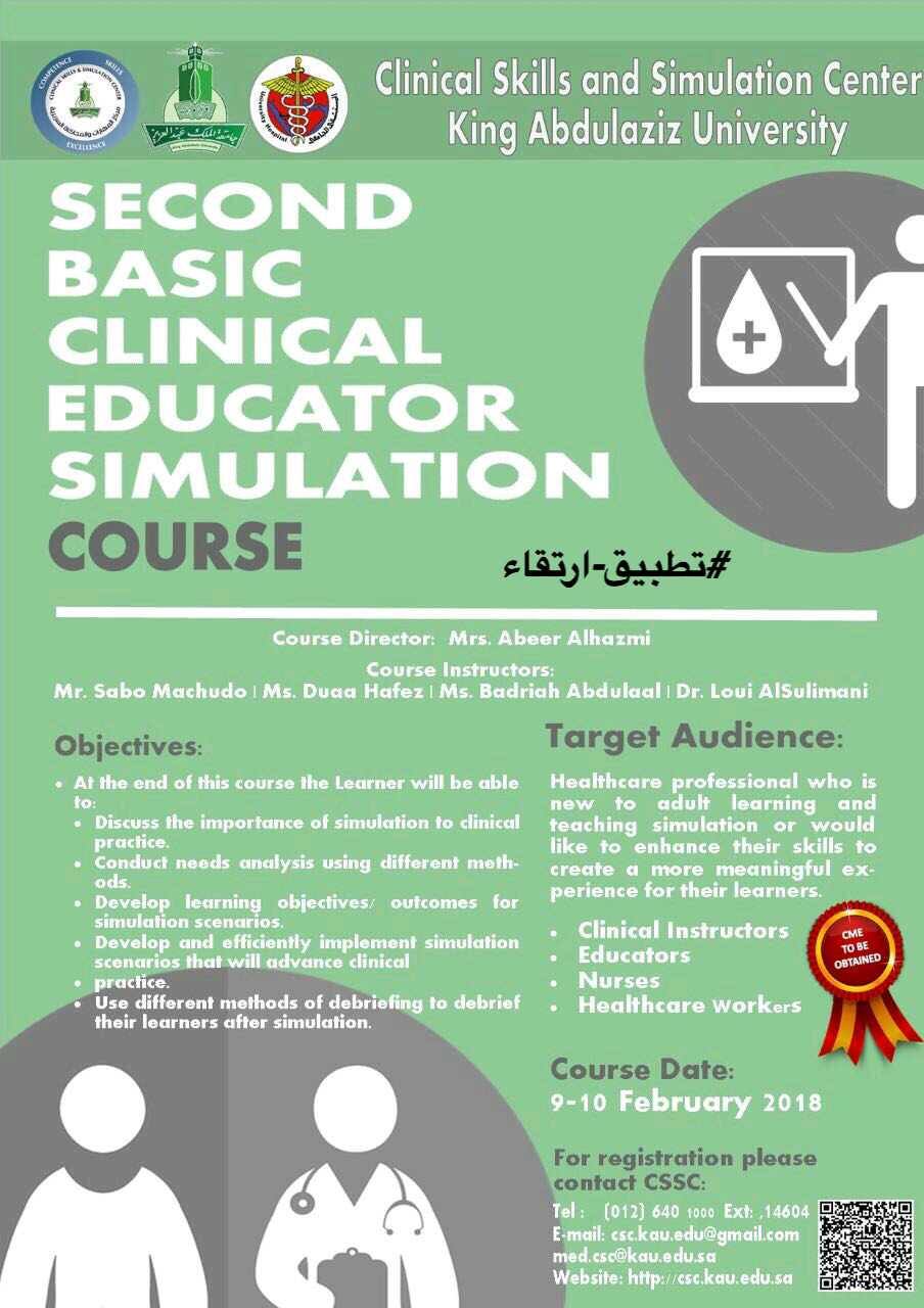تطبيق ارتقاء A Twitter تطبيق ارتقاء Second Basic Clinical Educator Simulation Course مركز التدريب والمحاكاة السريرية جامعة الملك عبدالعزيز ارتقاء جدة الجمعة والسبت 23 24جمادى الأخير الموافق 9 10 فبراير2018 للتسجيل والاستفسار 012641000